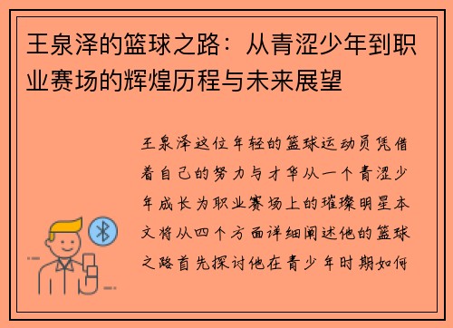 周琦作为中国篮球的代表性人物之一,近年来在国际篮球舞台上的崛起引发了广泛关注。他不仅以出色的球技和身高优势在比赛中展现出强大的统治力,还面临着来自不同国家和地区球员的挑战。本文将从四个方面详细探讨周琦在国际篮球舞台上的崛起与挑战,以及这些因素如何影响中国篮球的未来发展。这四个方面分别是:技术能力提升、国际赛事经验、青少年培养机制以及媒体与市场影响力。通过对这四个方面的分析,我们可以更深入地理解周琦...