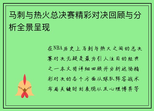 本文将对维斯特曼与米竞技的对决进行前瞻分析,并预测比赛结果。首先,我们将从两队的历史交锋记录入手,探讨双方在过往比赛中的表现及其对本场比赛的影响。接着,我们会分析球队近期状态,包括球员伤病情况、战术安排等因素。然后,将关注双方阵容构成,评估各自关键球员的能力与发挥。最后,我们会结合以上信息,对比赛的最终结果进行预测。通过这四个方面的深入探讨,力求为读者提供全面而细致的赛事分析。 1、历史交锋记录...